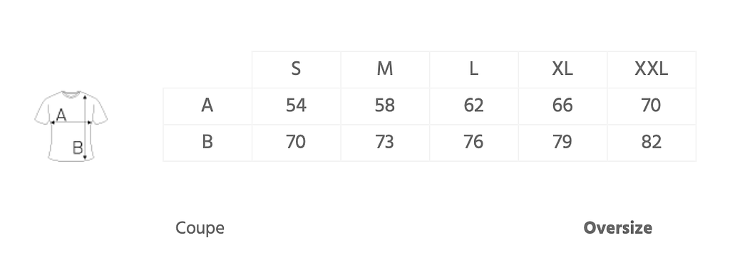 Coupe ample avec coutures latérales. Manches courtes. Col en bord côte. Bande de propreté au col. Manches droites. Puce de taille au col. Double coutures aux manches et à la taille.